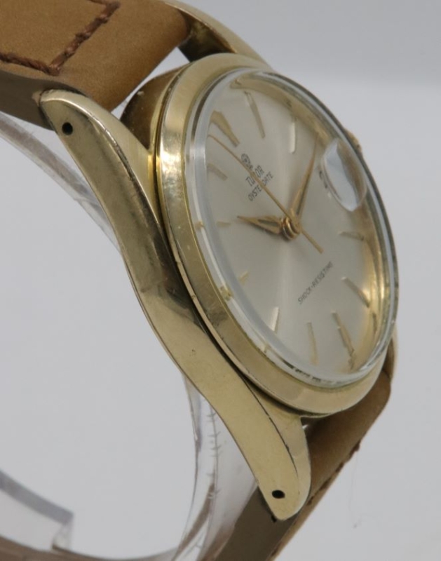 A larger gold capped case of a classic Oyster design, with sloped lugs and a smooth bezel. Original Rolex screw down crown. A stainless steel case back signed 'Original Oyster Case By Rolex Geneva'. Case referemce 7974.