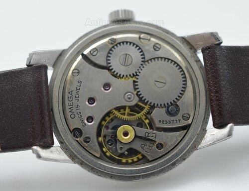 The watch is powered by a 15 jewel Omega 26.5 T3 manual wind mechanism. The 9.2m serial number dates this watch to circa 1941.
