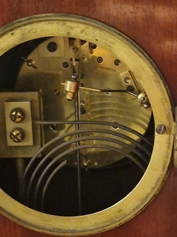 An 8-day duration mechanism by Samuel Marti, striking the 1/2 hours and hours on a gong. Circa 1880.