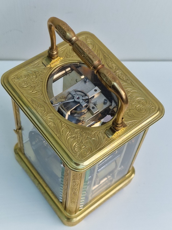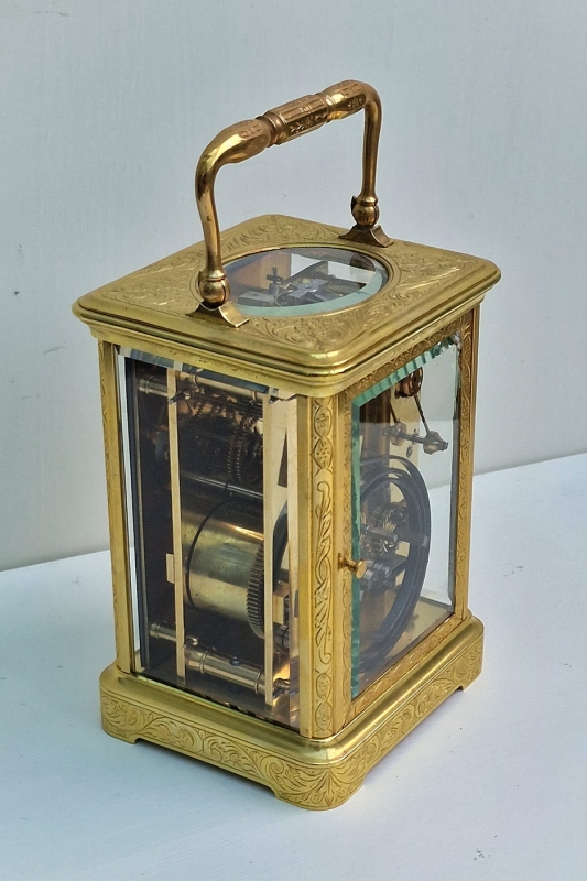 Brunelot Engraved Striking Carriage Clock