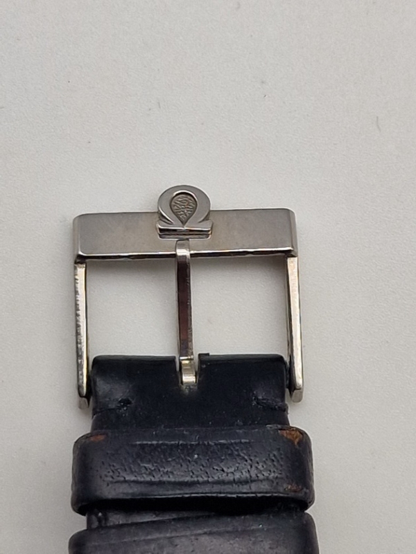 A stainless steel case with thick 'beefy' lugs with a screw down back. An Omega winding crown. The back is marked 'Seamaster' to the surround. An original Omega buckle and a genuine Omega strap