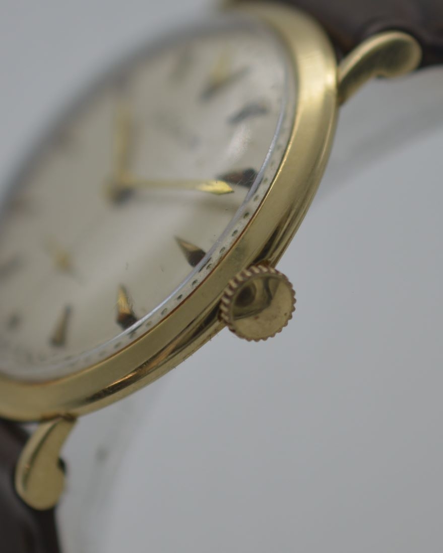 The watch is powered by a 17 jewel K480 Le-Coultre mechanism. Circa 1950s.