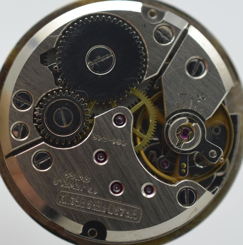 The watch is powered by a 17 jewel caliber 091-645 Girard-Perregaux, manual wind mechanism. Circa 1970.