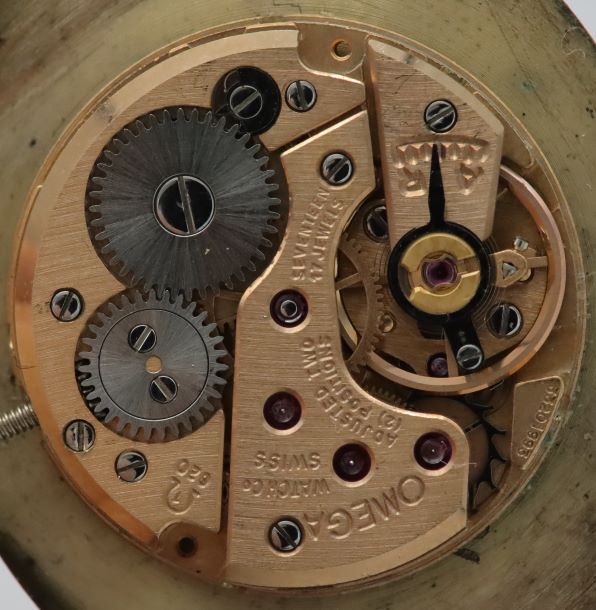 The watch is powered by a 17 jewel, manual wind Omega caliber 620 mechanism. Serial numbers date this watch to 1971.