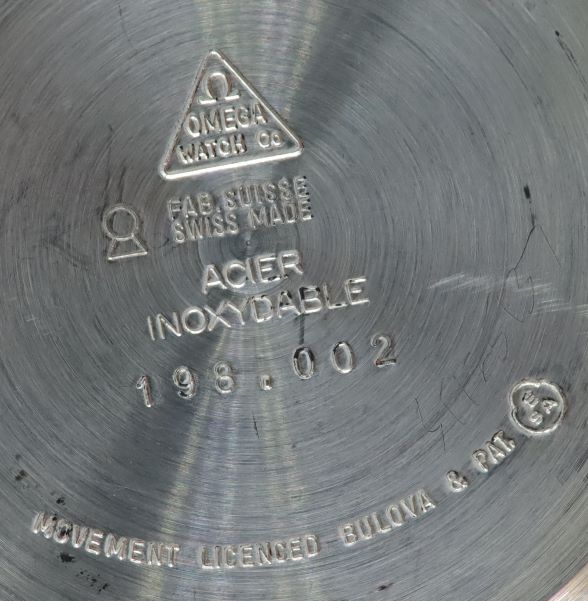 A stainless steel case in remarkable condition, with only minimal signs of wear. The main front of the case body is a brushed steel finish, with the edges and bezel showing a polished finish. A screw down case back with the Geneva Obeservatory logo for the Constellation line. Case reference 198.002.