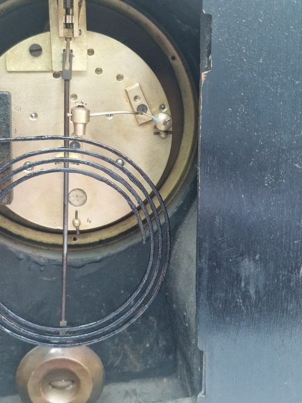 An impressive French tortoishell mantel clock. Very well cast gilt mounts of rococo design. An enamel dial with raised Roman numeral edging and 5 minute outer markers with blued steel hands. An 8-day duration mechanism striking the hours and half hours on a gong by Marti of Paris. Circa 1910.