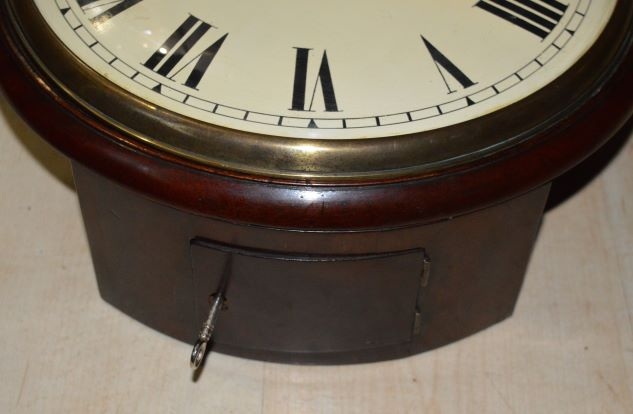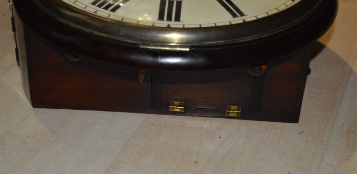 A quality Georgian English fusee dial wall clock. A 12" convex painted dial signed 'S B GAZE LONDON' with blued steel hands. A mahogany case with a cast brass bezel surround. An 8-day duration timepiece fusee mechanism. Circa 1820.