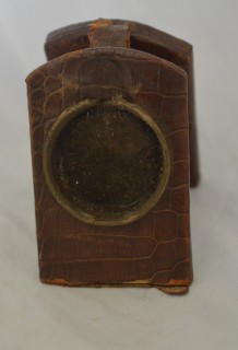 An early 20th century pocket watch stand. Exotic leather with opening front and stand to the rear. Slight damage to rear stand due to age but does stand up fine. Suitable for a watch 48-50mm. Circa 1920.
