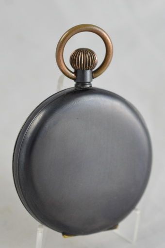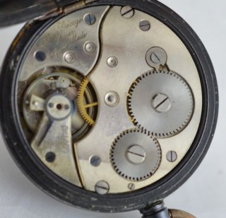 A gunmetal pocket watch retailed by Thomas Armstrong & Bros, Manchester. An enamel dial with Roman numerals and subsidiary seconds dial at 6 o'clock. A Swiss made mechanism signed 'King George Lever'. Circa 1920.